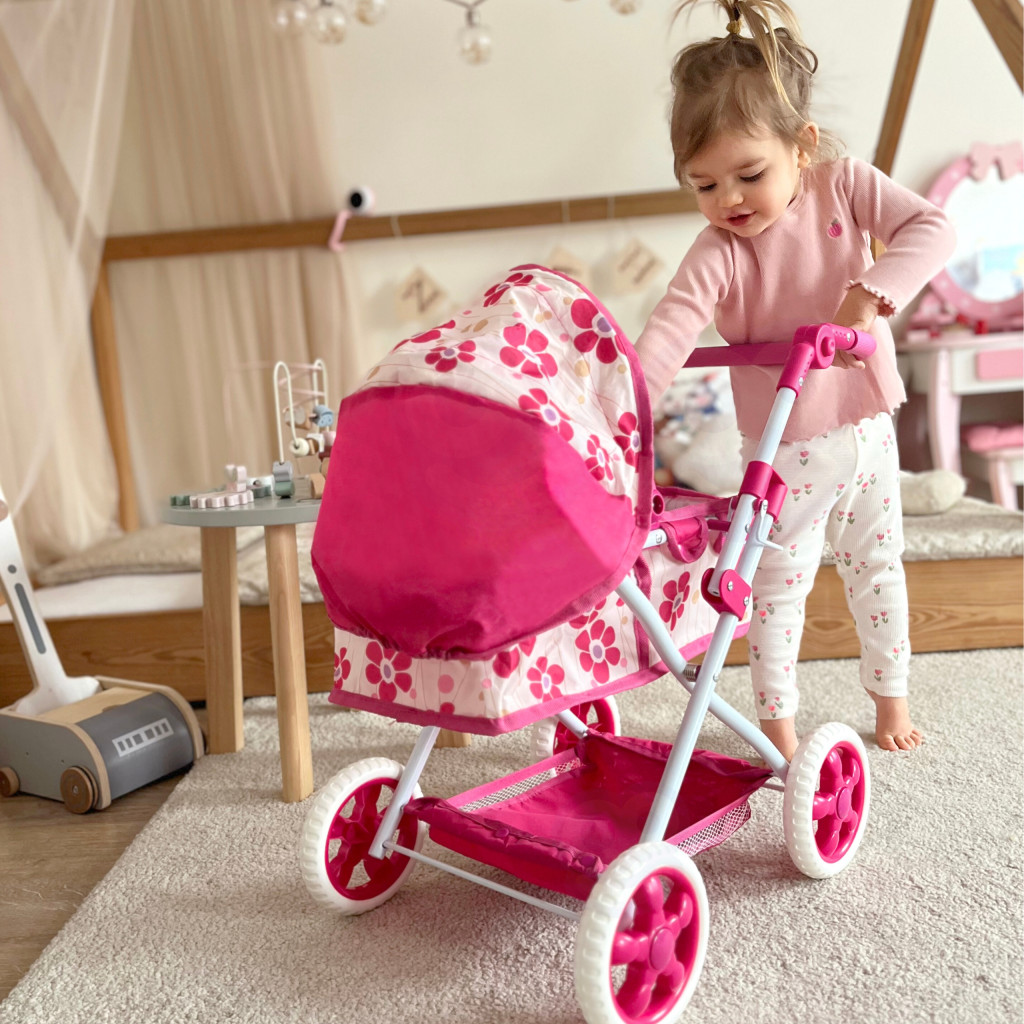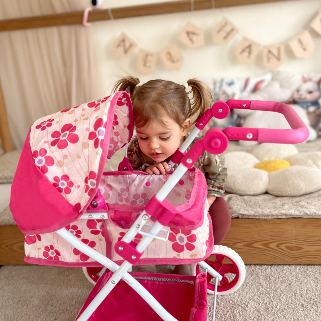 Ez a stílusos, mély és funkcionális WOOPIE babakocsi virágmintával a tökéletes választás minden kis babarajongó számára! A babakocsi állítható fogantyúval rendelkezik, így együtt nő a gyermekkel. Csendes kerekei biztosítják a sima manőverezhetőséget, stabil szerkezete pedig a biztonságos játékot.