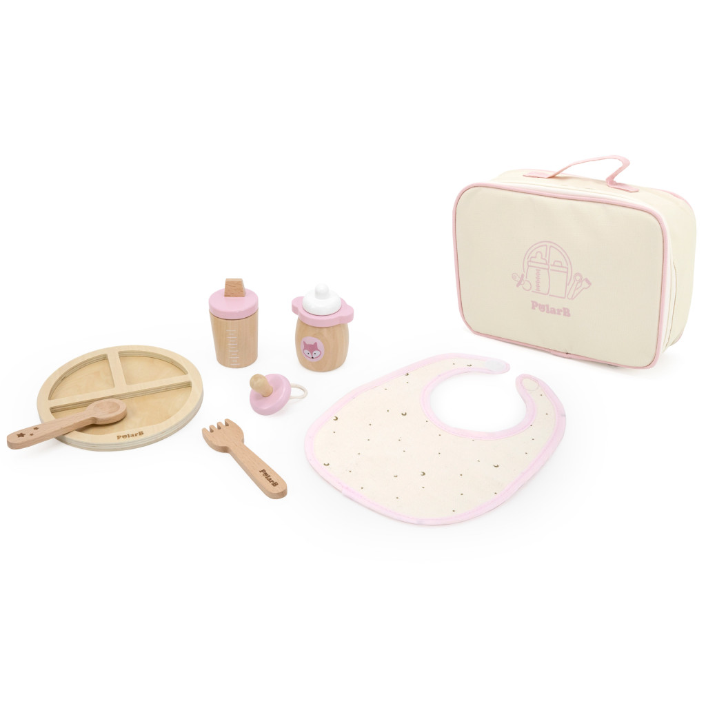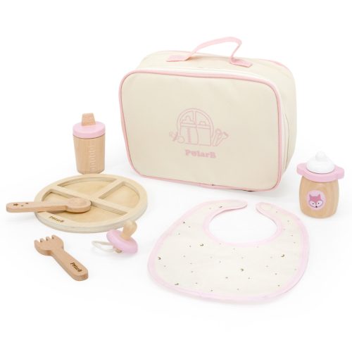 Ez a bájos, Viga márkájú, fából készült babaetető készlet, amely a PolarB sorozat része, tökéletes módja annak, hogy szerepjáték révén fejlessze a gyermekek szeretet- és gondoskodásérzetét. Nem csupán játék, hanem eszköz is, amely támogatja a kicsi érzelmi és szociális fejlődését. A készlet gyönyörűen kidolgozott kiegészítőkből áll, amelyeket gondosan a legkisebbekre terveztek. Minden darab kényelmesen cipzáras táskába van csomagolva a könnyű tárolás és szállítás érdekében. A táska mindent tartalmaz, amire szüksége van szeretett babája gondozásához – az előkétől a cumisüvegig. Ezzel a készlettel a kicsik gondoskodhatnak a babákról, miközben megtanulják a felelősséget, az empátiát és a másokkal való törődést. Nagyszerű módja a képzelet és a kreativitás fejlesztésének a változatos játékhelyzetek létrehozásával.