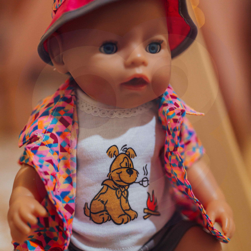 Ez a színes ruha a megbízható Woopie márkától csodálatos kiegészítője lesz babádnak. 43-46 cm-es babákhoz tervezve.